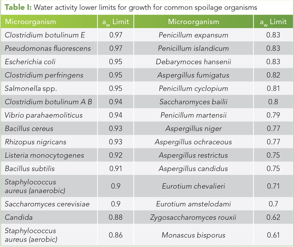 With this in mind still, we must maintain patient safety, and we can use the following chart from the United States Pharmacopoeia 1112 as an example of aw levels at which we will see microbial growth: